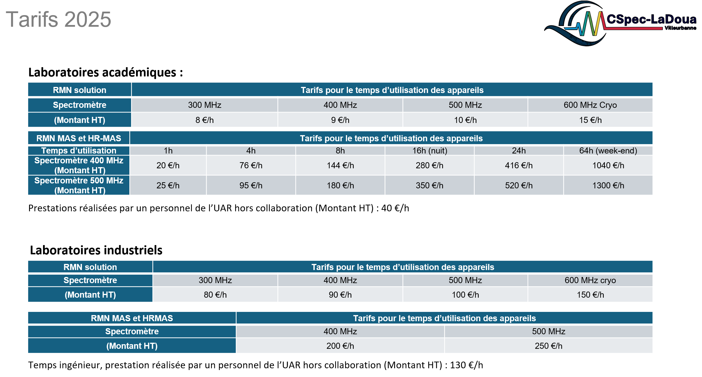 Merci de contacter les pôles pour un devis adapté à votre besoin (temps d’analyse long, nombre important d’échantillons, mise au point de méthode…).